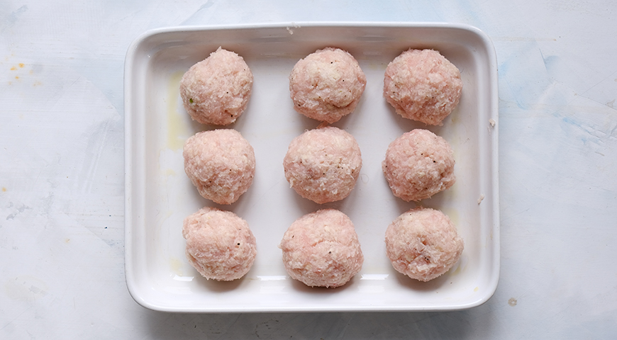 Мокрыми руками сформируйте небольшие шарики и переложите их на противень. Выпекайте до золотистого цвета, около 30 мин.