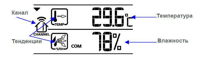 Точные показания температуры и влажности снимаются встроенными в устройство цифровыми сенсорами, которые регистрируют температуру и влажность в помещении. Дистанционные беспроводные датчики регистрируют эти же показания на улице.