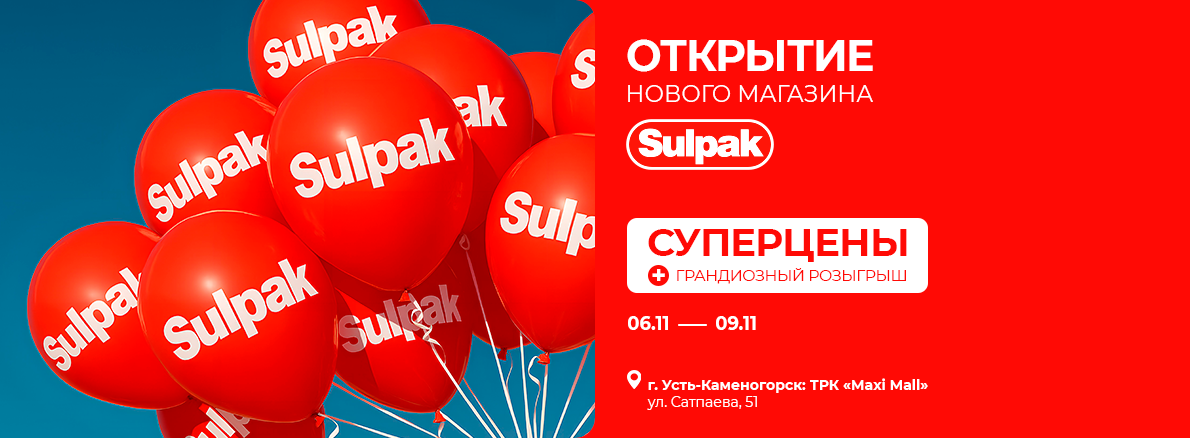 Sulpak рад объявить о Грандиозном Открытии нового магазина в г. Усть-Каменогорск!
