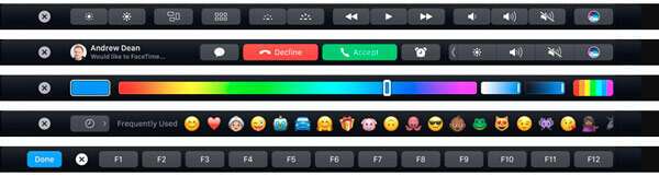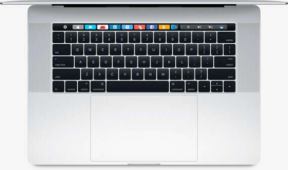 Панель с разрешением 60x2170 пикселей предоставляет быстрый доступ к управлению контекстными функциями, в зависимости от текущего приложения. Также в панель интегрирован сенсор Touch ID, с помощью которого можно осуществлять вход в учетные записи и авторизовать платежи Apple Pay.