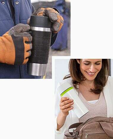 Термокружки Travel Mug настолько универсальны, что вы их можете использовать под любые жидкости: кофе, чай или даже горячие супы. В холодное время года термокружки будут вам хорошим подспорьем и спасут в дороге, ведь ваш напиток останется горячим в течение как минимум четырех часов. В случае предстоящей длительной зимней прогулки вас спасут горячие бульоны. А летом «термокружка на вынос» сохранит ваш холодный напиток таким в течение 8 часов: то ли это свежевыжатый фруктовый сок или холодный чай, любой напиток останется охлажденным в течение всего дня на природе или на открытой местности.