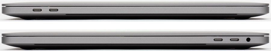 Расположение и набор разъемов на гранях устройства остались прежними: это четыре Thunderbolt 3 с разъемом USB-C (по два с каждой стороны), а также 3,5-миллиметровый миниджек.