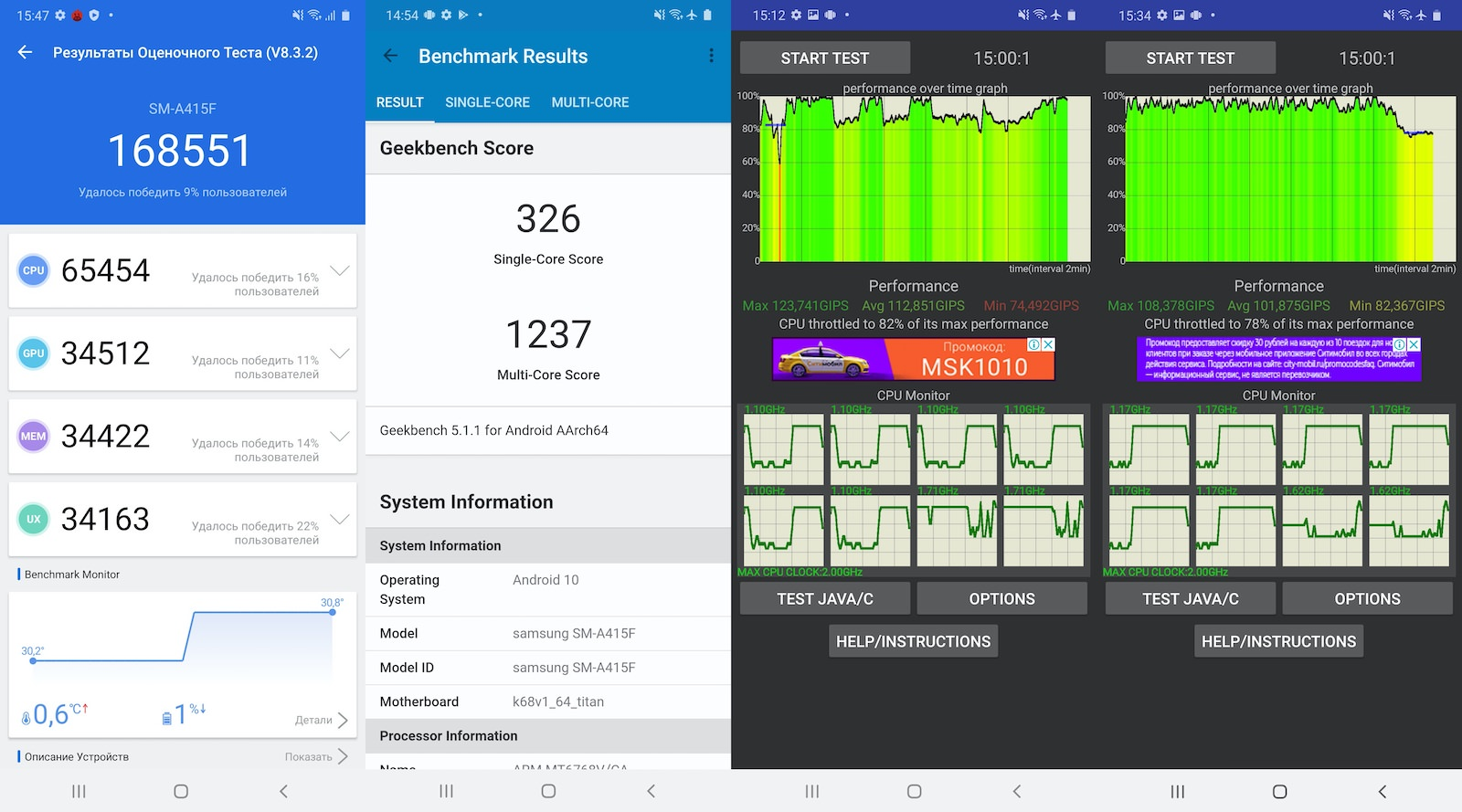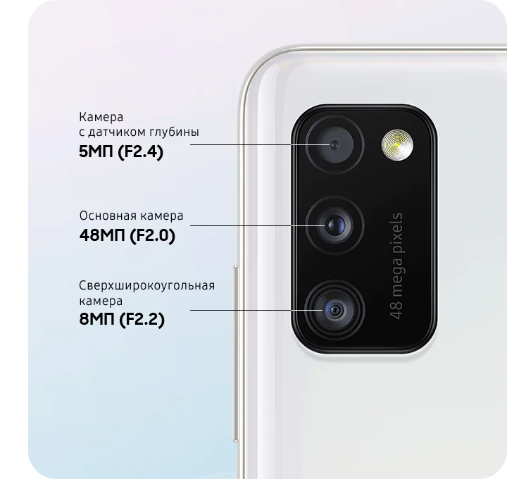 Samsung Galaxy A41 как раз получил MediaTek P65. Точно такой же стоит и в Galaxy A31. Объём оперативной памяти 4 ГБ, встроенной 64 ГБ — всё на привычном уровне. Лоток под карту памяти имеется, можно установить microSD до 512 ГБ включительно.