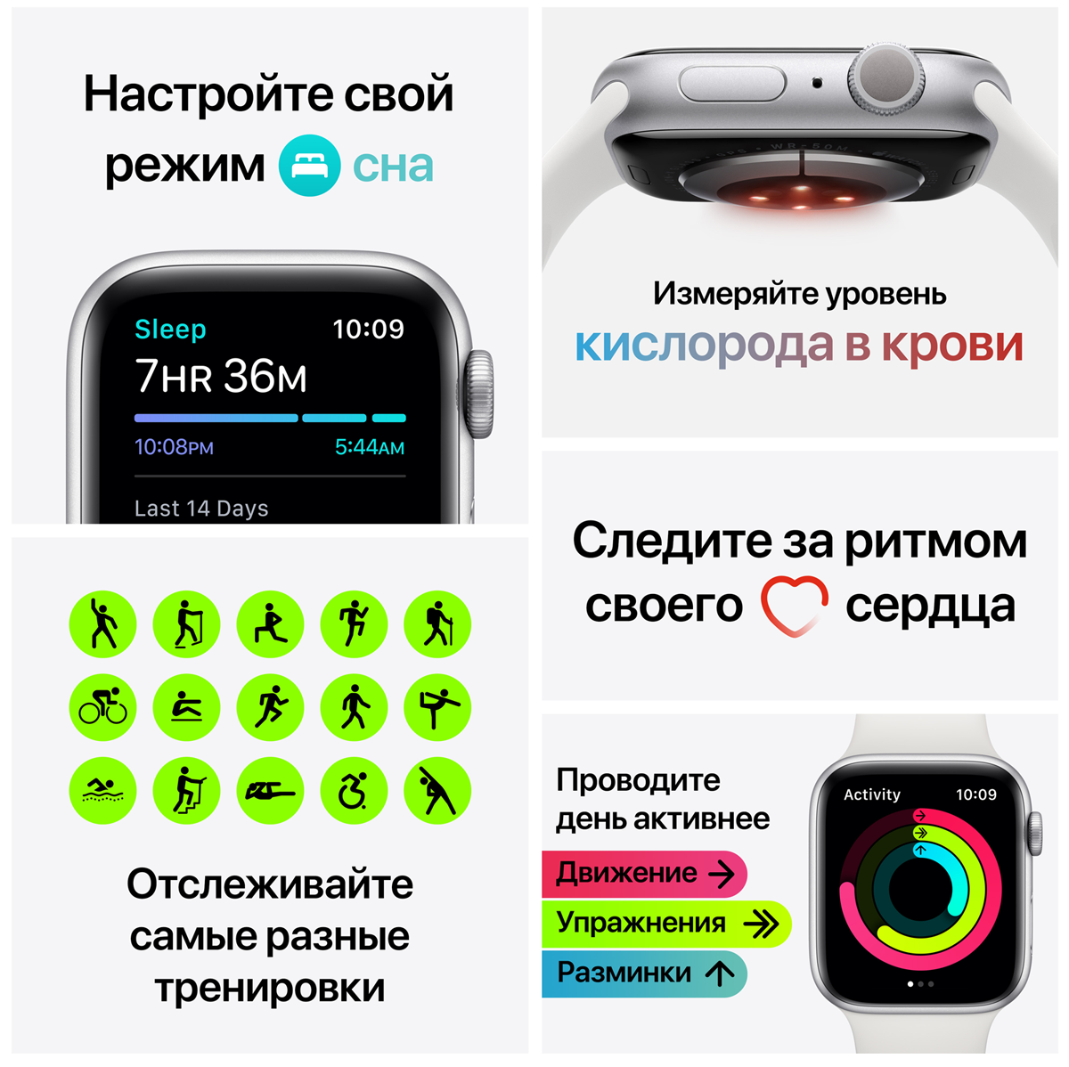 Apple Watch Series 6 — это мощное устройство, которое бережно заботится о вас.