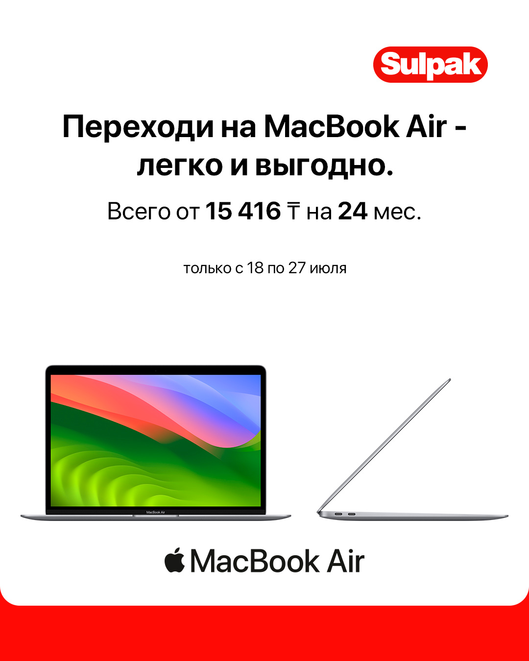 Супер-предложение от Sulpak и Kaspi Bank! До 27 июля покупайте гаджеты Apple в рассрочку до 24 месяцев от Kaspi Bank и сделайте свои покупки еще более выгодными. Погрузитесь в мир инноваций с высокотехнологичными продуктами от Apple и ощутите настоящее удовольствие от современных технологий. Не упустите шанс сделать свои праздники яркими — сделайте свой выбор в Sulpak и получите больше, чем просто гаджеты! ✨📱🍎