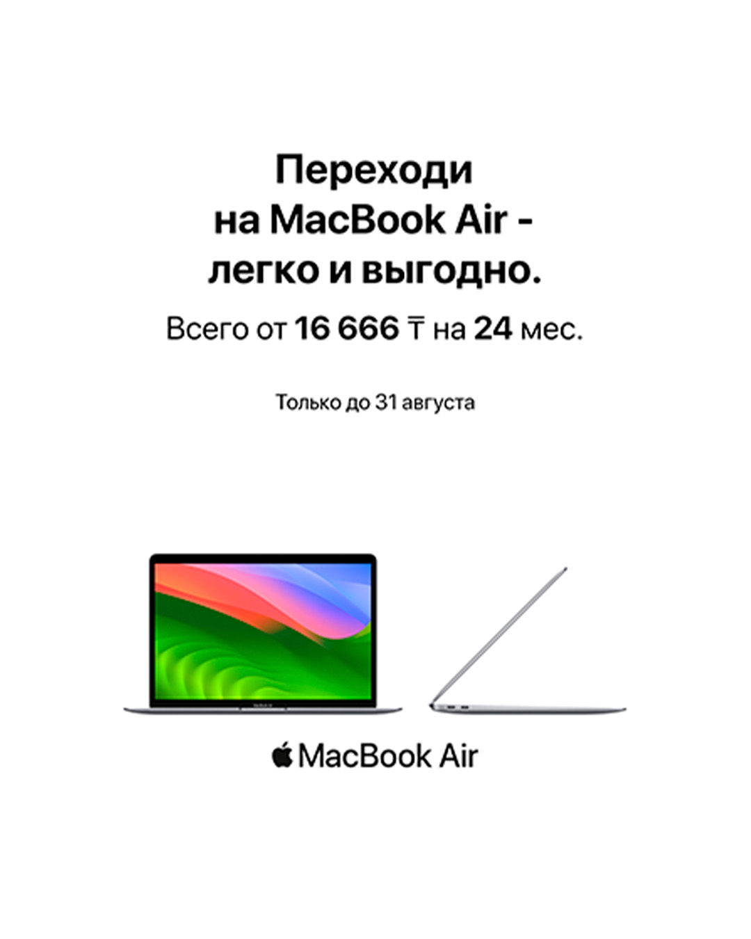 MacBook — мощный инструмент для учёбы, работы и творчества. Быстрый запуск, плавная работа даже с ресурсоёмкими задачами и впечатляющая автономность — всё это делает MacBook идеальным спутником на каждый день. Он лёгкий, тонкий и надёжный — легко поместится в рюкзак и всегда будет под рукой, когда нужно вдохновение или сосредоточенность.