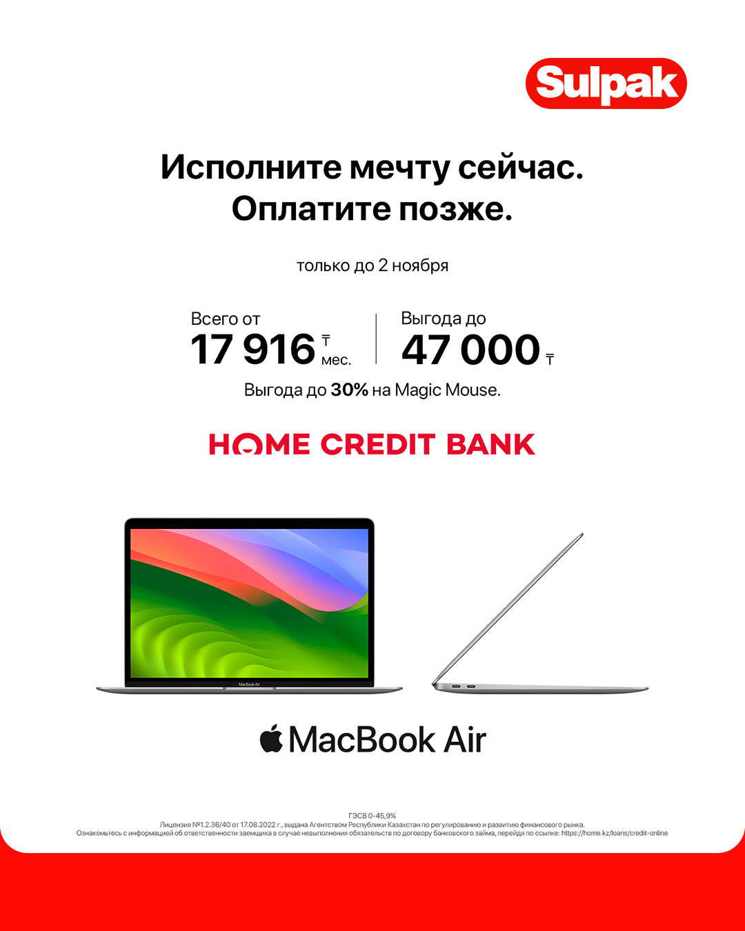 Исполни мечту с Apple и Home Credit Bank в Sulpak!