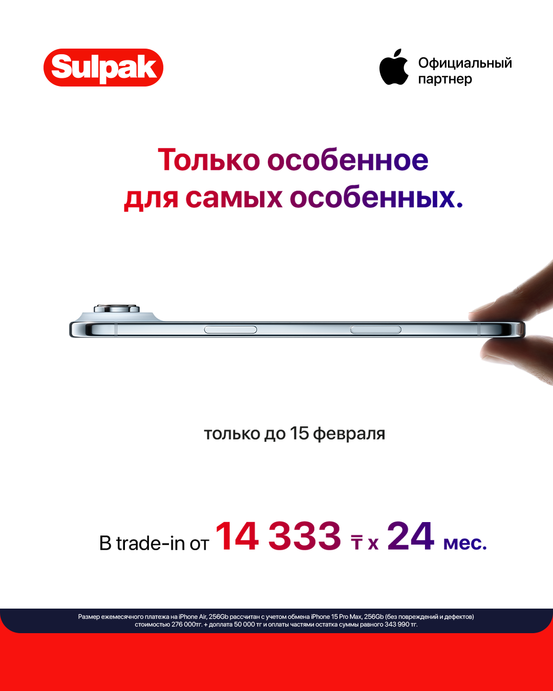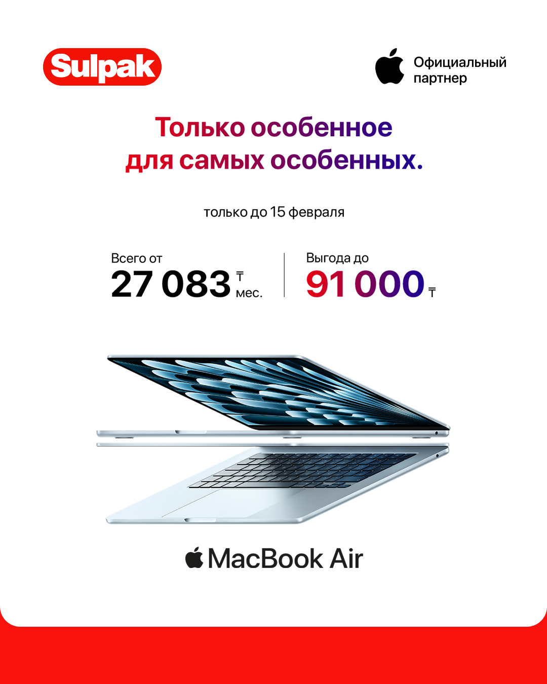 🎁Только до 15 февраля в Sulpak — специальное предложение ко Дню всех влюблённых: Apple без переплат, без процентов и с особыми условиями.