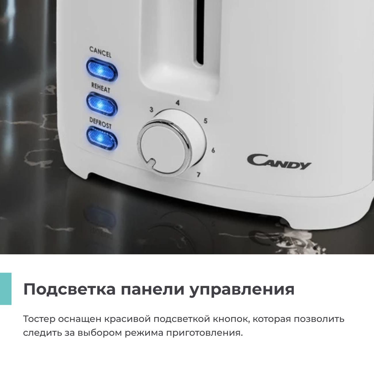 Потребляемая мощность: 850 Вт / Кнопка отмены: Да / Режим подогрева: Да / Режим разморозки: Да / Отсек для сетевого шнура: Нет / Особенности: Благодаря 7 степеням поджаривания вы можете приготовить горячие тосты на любой вкус и из любых видов хлеба.