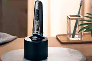Мощная система очистки эффективно очищает и смазывает бритву всего за 1 минуту, поддерживая ее в оптимальном состоянии. Очистка бритвы в станции в 10 раз эффективнее, чем обычная очистка водой****. Это самая маленькая в мире станция очистки, которую можно с удобством хранить и использовать где угодно.
