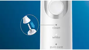 Не знаете, какой режим и уровень интенсивности выбрать? Это больше не проблема. Функция синхронизации режимов BrushSync "подскажет" щетке, какую насадку вы используете. Например, если вы установите насадку для ухода за деснами, зубная щетка выберет оптимальный режим и уровень интенсивности для ухода за деснами. Вам потребуется просто нажать кнопку питания.