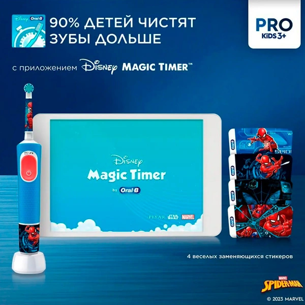 Детская электрическая зубная щетка Oral-B Vitality Pro Kids "Человек-Паук"