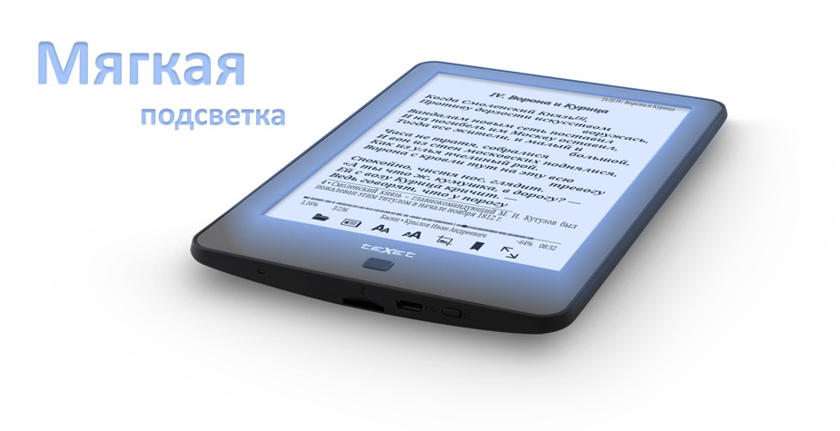 Обширный функционал teXet TB-176FL вместился в удивительно компактный корпус толщиной всего 10 миллиметров и весом чуть больше 200 граммов! Помимо microUSB-кабеля и сетевого адаптера, в комплект входит новый фирменный чехол teXet. Тонкая обложка не портит эстетику teXet TB-176FL, не утяжеляет электронную книгу и при этом надежно защищает корпус и дисплей от разного рода повреждений.
