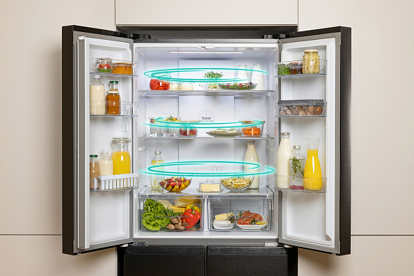 Система вентиляции MultiFlow 360° равномерно распределяет воздух внутри холодильника, обеспечивая оптимальную циркуляцию воздуха и наилучшие условия для хранения продуктов.