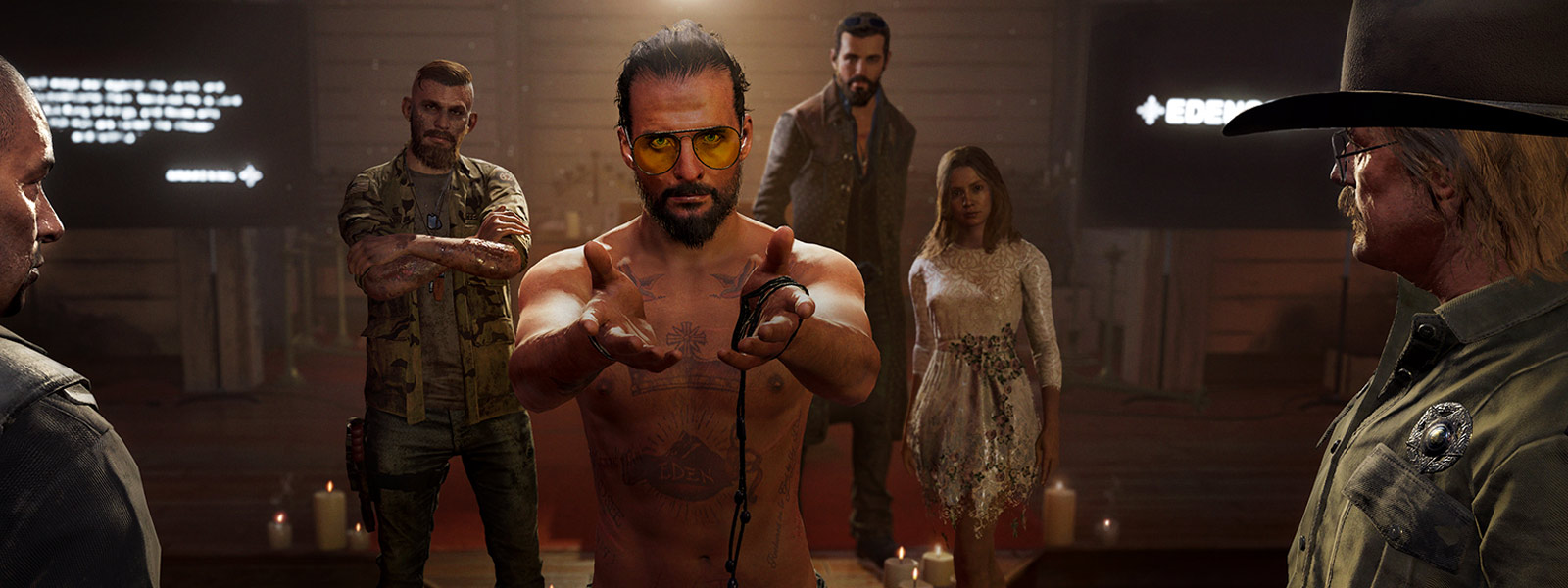 Выступи против Джозефа Сида и его безумных последователей в постоянно меняющемся, живущем своей жизнью мире, который реагирует на твои действия и принятые решения. В игре действует специальный «уровень сопротивления», который существенно влияет на окружающий мир по мере прохождения, и каждое твое действие двигает сюжет вперед. Ты можешь отдавать команды животным и создавать с их помощью свою стратегию прохождения.