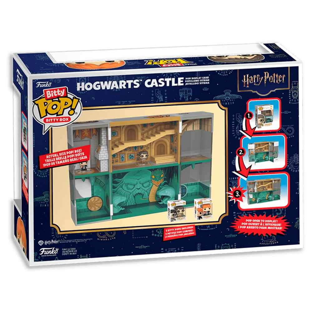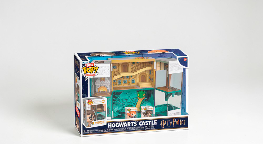 Набор включает в себя жесткий акриловый витринный шкаф, смоделированный в виде коробки POP!, который открывается, демонстрируя знаковые комнаты из замка Хогвартс. Это позволяет не только защитить содержимое, но и придать ему особый шарм.
