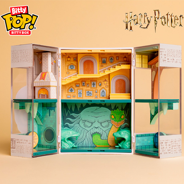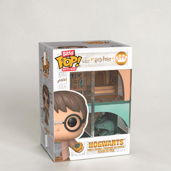 Акриловый витринный шкаф смоделирован так, чтобы напоминать коробку POP!, и открывается, чтобы показать знаковые комнаты со всего замка Хогвартс.