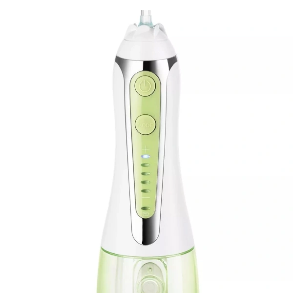 У прибора 5 режимов работы, вы можете выбрать от самого слабого до самого сильного. При работе на корпусе ирригатора светится индикатор выбранного режима. Ирригатор имеет автоматическое отключение после 2 минут использования.