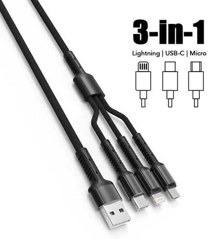 Кабель 3-в-1, также известный как многофункциональный кабель, добавляет комбинированное решение к оригинальному кабелю, сконфигурированному с комбинированной печатной платой для поддержки нескольких устройств, что устраняет необходимость частого поиска кабеля. Он объединяет порт Lightning, порт type-C и порт Micro USB в один, совместим с несколькими устройствами, может быть подключен к любому смартфону, планшету и ПК.