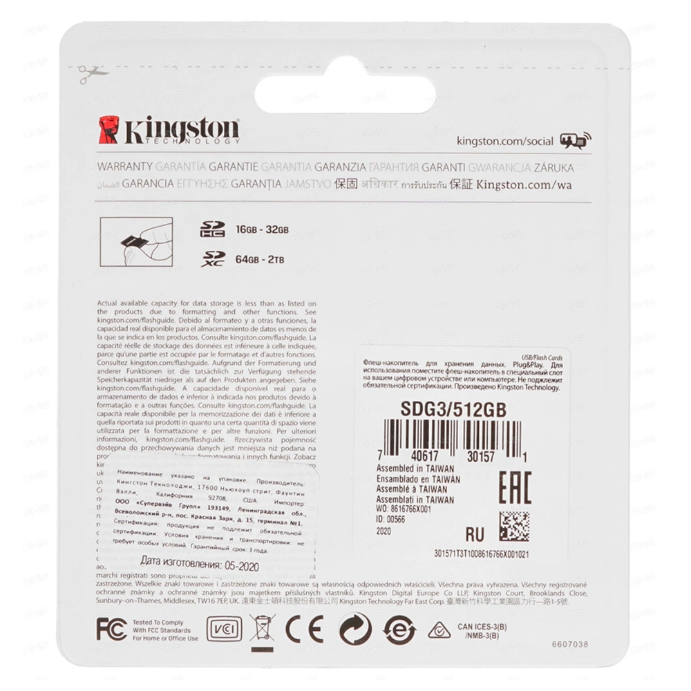 Карта памяти Kingston SDG3/512GB Class 10 512GB без адаптера SDG3/512GB