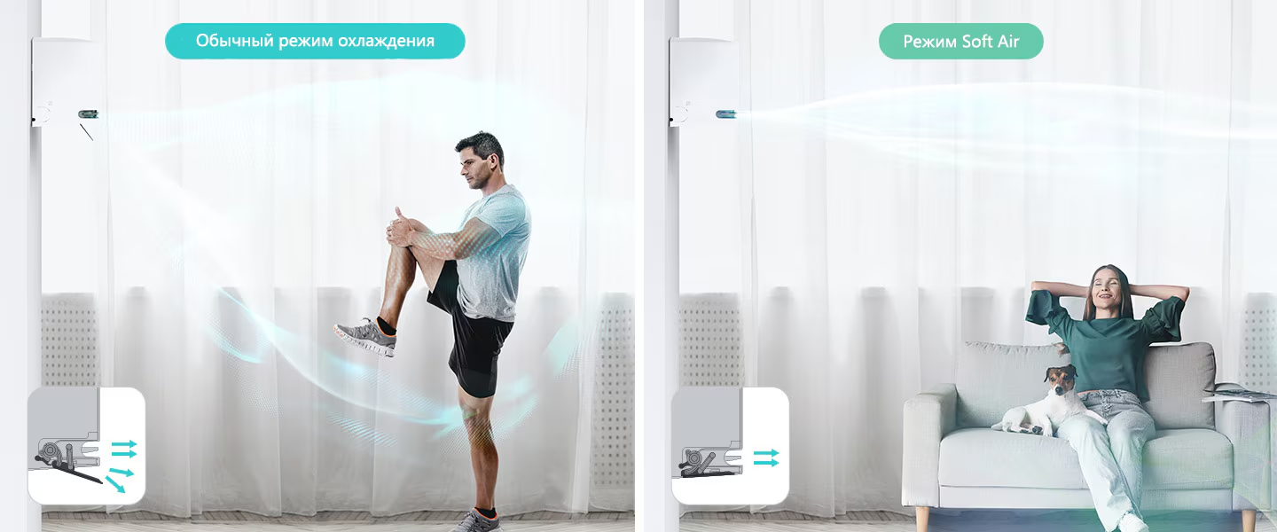 Функция Soft Air меняет направление потока воздуха, обеспечивая более мягкое и комфортное охлаждение. Настройте свой персональный диапазон обдува и температуру.