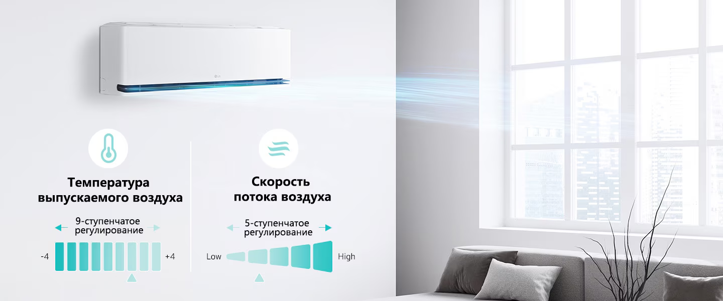 *Температура воздушного потока может регулироваться с помощью пульта дистанционного управления или ThinQ.