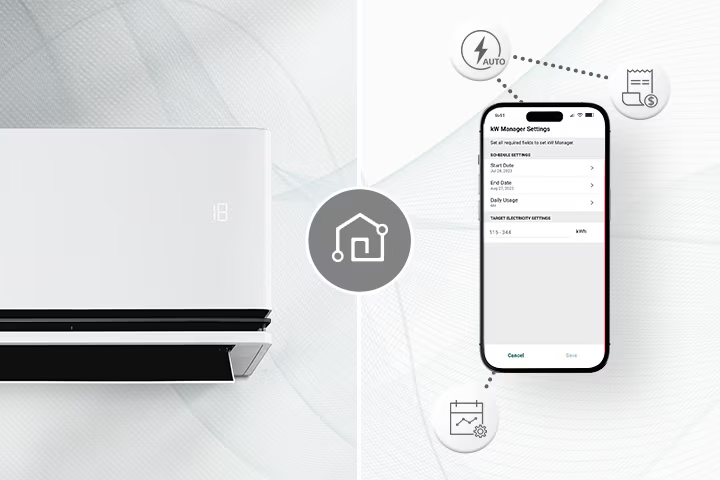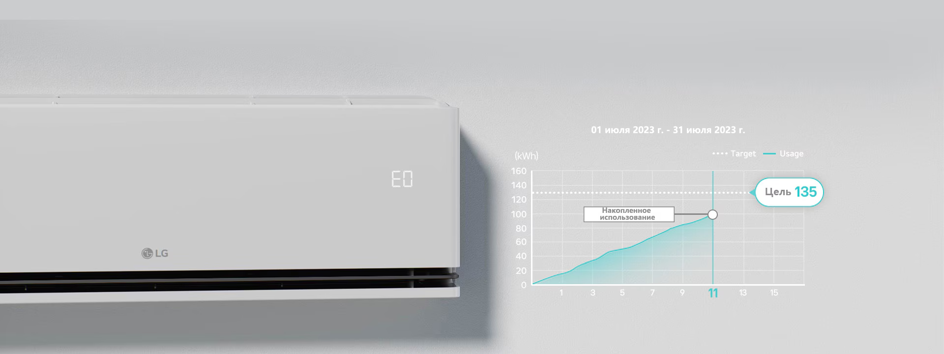 Определяйте периоды использования и уровень энергопотребления в удобном приложении ThinQ™. Если суточный лимит потребления превышен, оставшиеся дни автоматически перерассчитываются в рамках заданных вами ограничений.