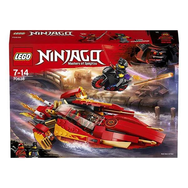 Фигурка отважного Кая окрещена в яркий красный цвет, на костюме есть черные детали и особый отличающий героя принт. Катер имеет обтекаемую форму и напоминает торпеду. Он выполнен в алых тонах и украшен желтыми деталями. В задней части находятся две выхлопные трубы, откуда вырываются языки пламени. На переднюю часть нанесен принт с символикой ниндзя. Транспортное средство оборудовано огромным количеством оружия, которое находится как в зоне видимости, так и тщательно спрятано. Кабина открывается, туда с легкостью помещается минифигурка персонажа, внутри нее расположена приборная панель. Если отодвинуть пружинные панели, можно увидеть мощные ракеты.
