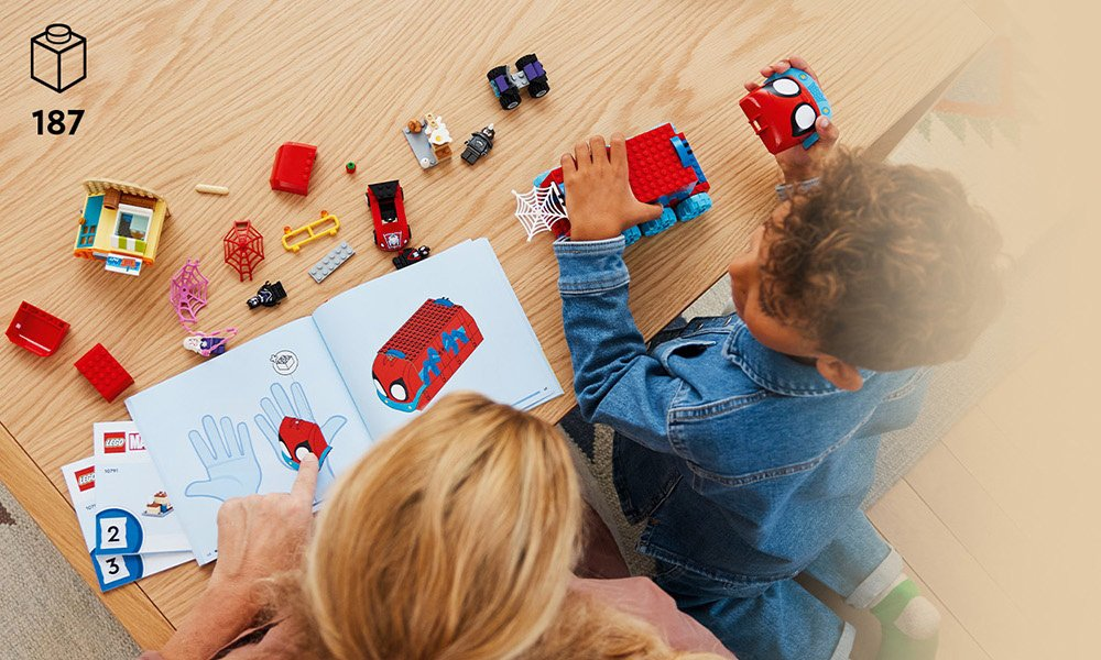 В этом наборе для знакомства с творчеством LEGO Marvel есть стартовый кирпичик, модульные детали и 1 самостоятельная сборка в пакетике.