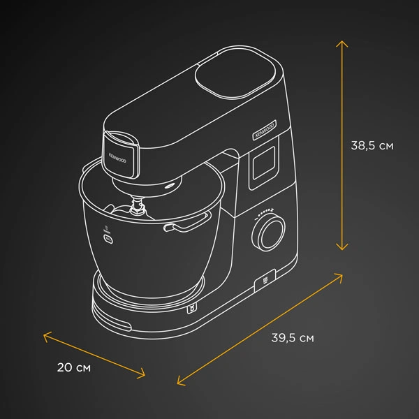 Кухонная машина, К-образный крюк, венчик, крюк для теста, венчик для кремов, чаша 7 л, чаша 5 л, брызговики, термостойкой шпатель, инструкция, гарантийный талон