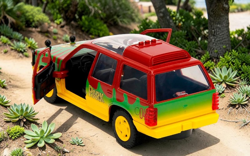 В рамках подготовки к встрече с динозаврами автомобиль был сконструирован так, чтобы выдерживать огромные нагрузки.