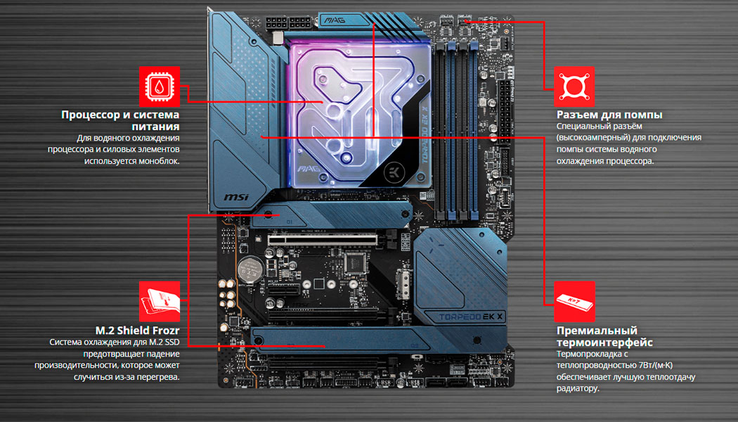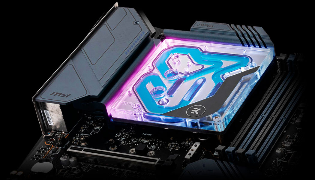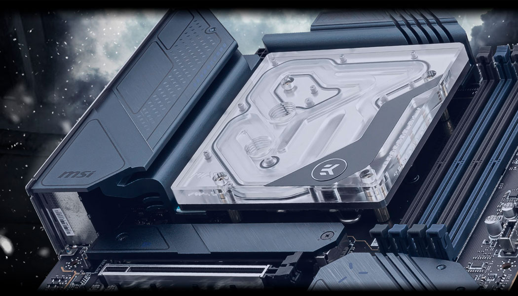 Для удержания температуры компонентов и процессора Intel 12-го поколения на надлежащем уровне на материнскую плату устанавливается оригинальный кулер EK, который обслуживает и процессор, и силовые элементы. Данная система водяного охлаждения гарантирует стабильную работу компьютера под высокими игровыми нагрузками при минимальном уровне шума.