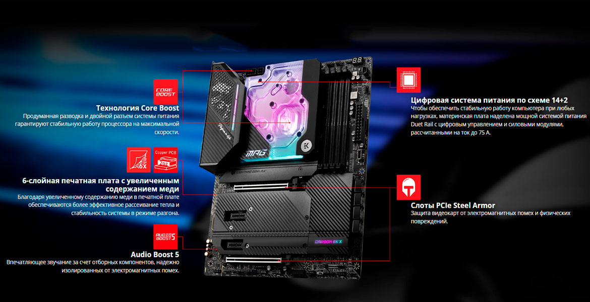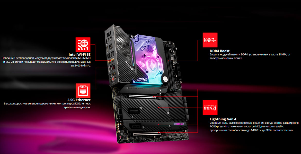 Охлаждение Frozr Al, 2.5G Ethernet, технология Audio Boost 5, иллюминация Mystic Light с гибкой регулировкой