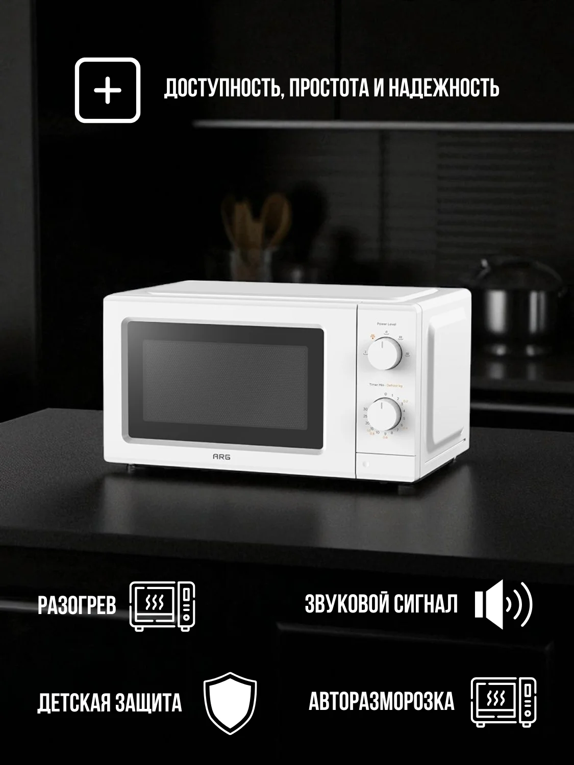 Микроволновая печь ARG сочетает в себе стильный и компактный дизайн, высокую мощность и удобство использования. Интуитивно понятная панель управления и функции безопасности делают её надежным помощником на кухне.