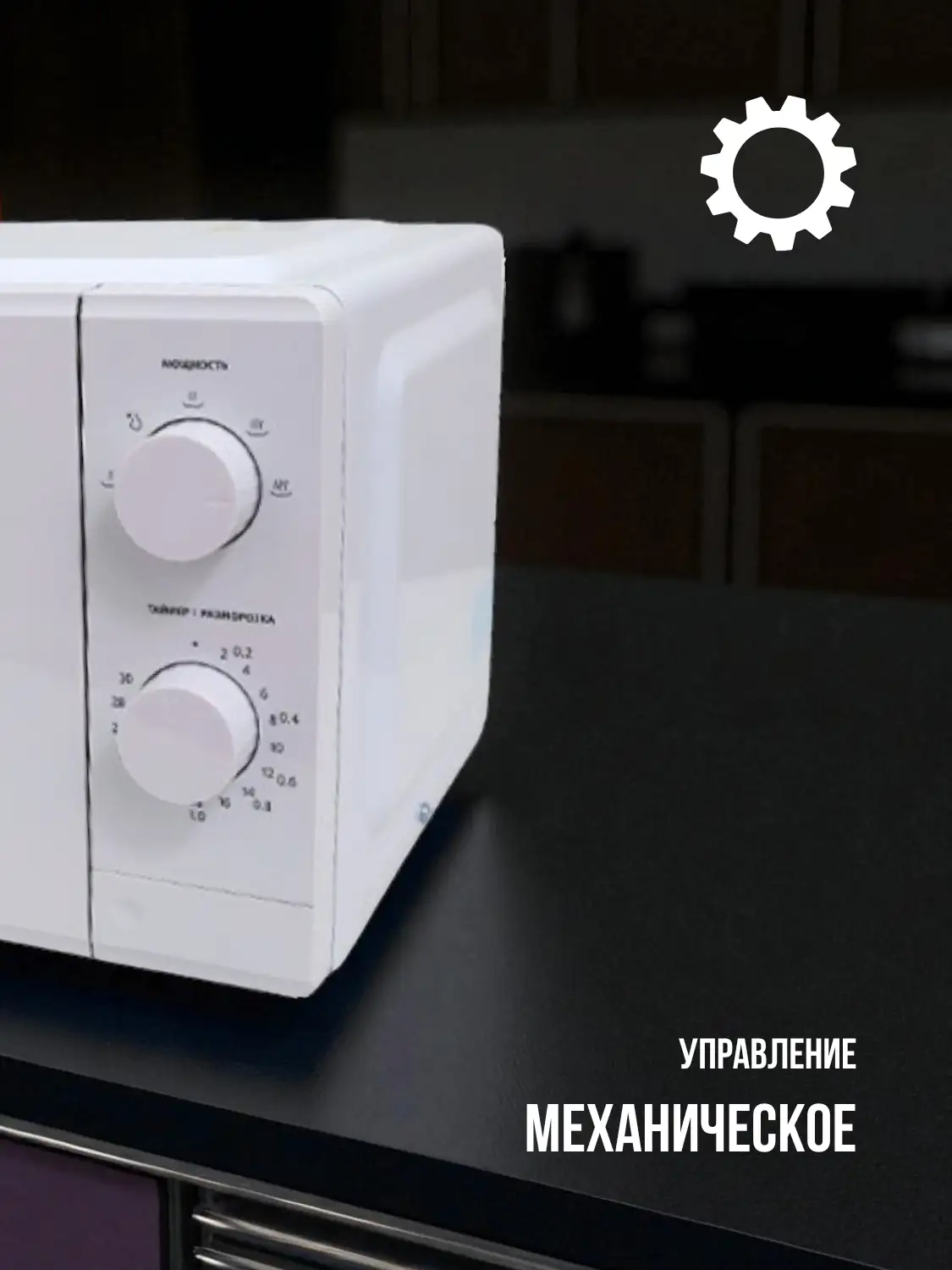 Микроволновая печь ARG оснащена механическим управлением, что обеспечивает надежность и простоту использования. С помощью удобных поворотных ручек вы можете легко выбирать режимы приготовления, настраивать мощность и время, делая процесс готовки интуитивно понятным и эффективным.