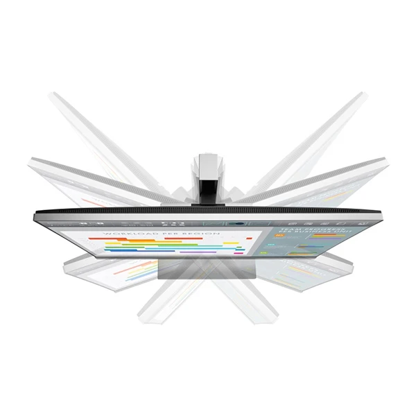 За счет регулировки высоты (в диапазоне 150 мм), угла наклона и поворота можно выбрать наиболее удобное для работы положение монитора. С помощью шарнирной подставки можно менять портретную ориентацию на альбомную, что повышает удобство работы с несколькими мониторами.