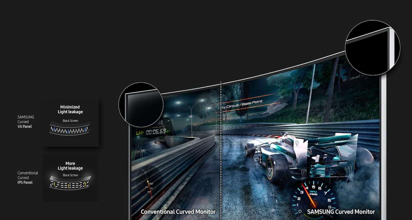 Более изогнутый экран для лучшего восприятия изображения. Изогнутый экран в мониторах появился как следствие изогнутости глаза человека, повторяя контур глаза удается достичь меньшей усталости благодаря более редкой фокусировке на изображении.