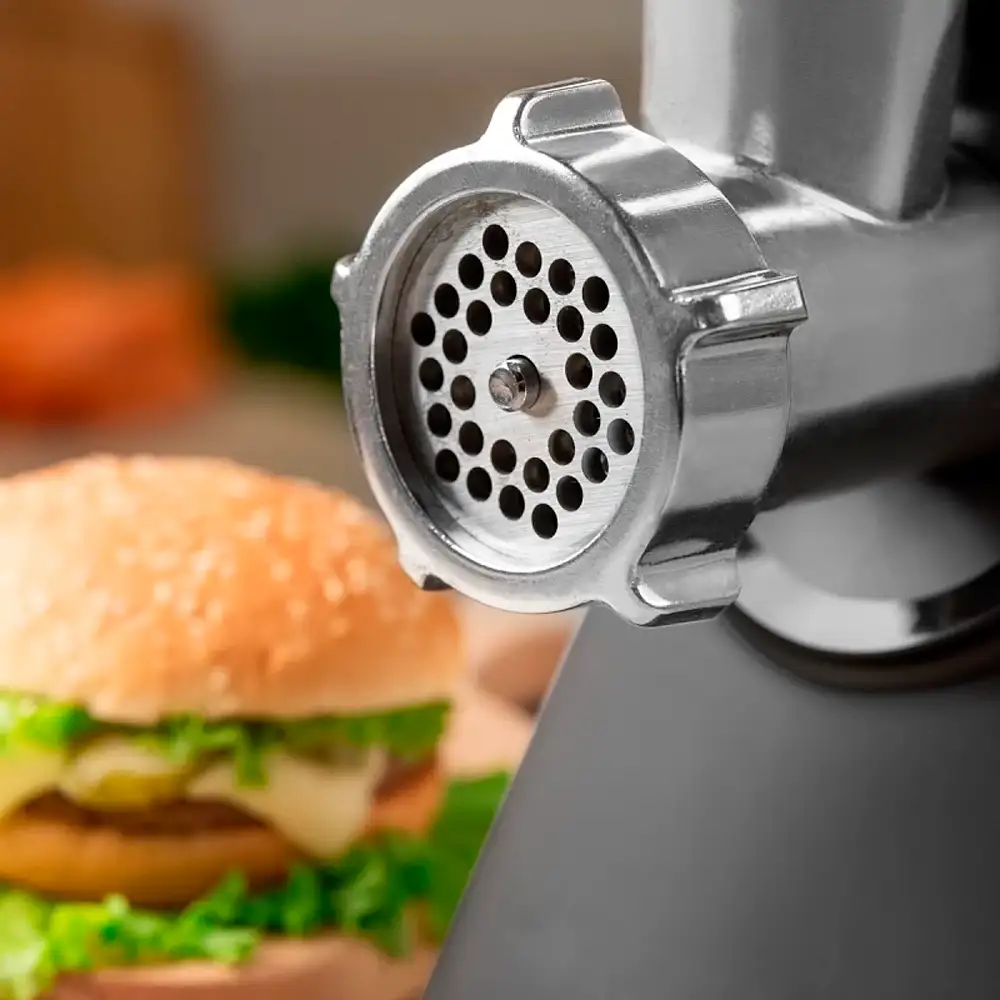 В комплект мясорубки Scarlett SC-MG45M27 входят три сменные решетки с различным диаметром отверстий, что позволяет добиться желаемой текстуры продукта. Также предусмотрен насадка для колбас и кеббе, расширяющая возможности использования устройства. Высокий уровень безопасности обеспечивается системой защиты от перегрева, что предотвращает поломки при длительной эксплуатации.