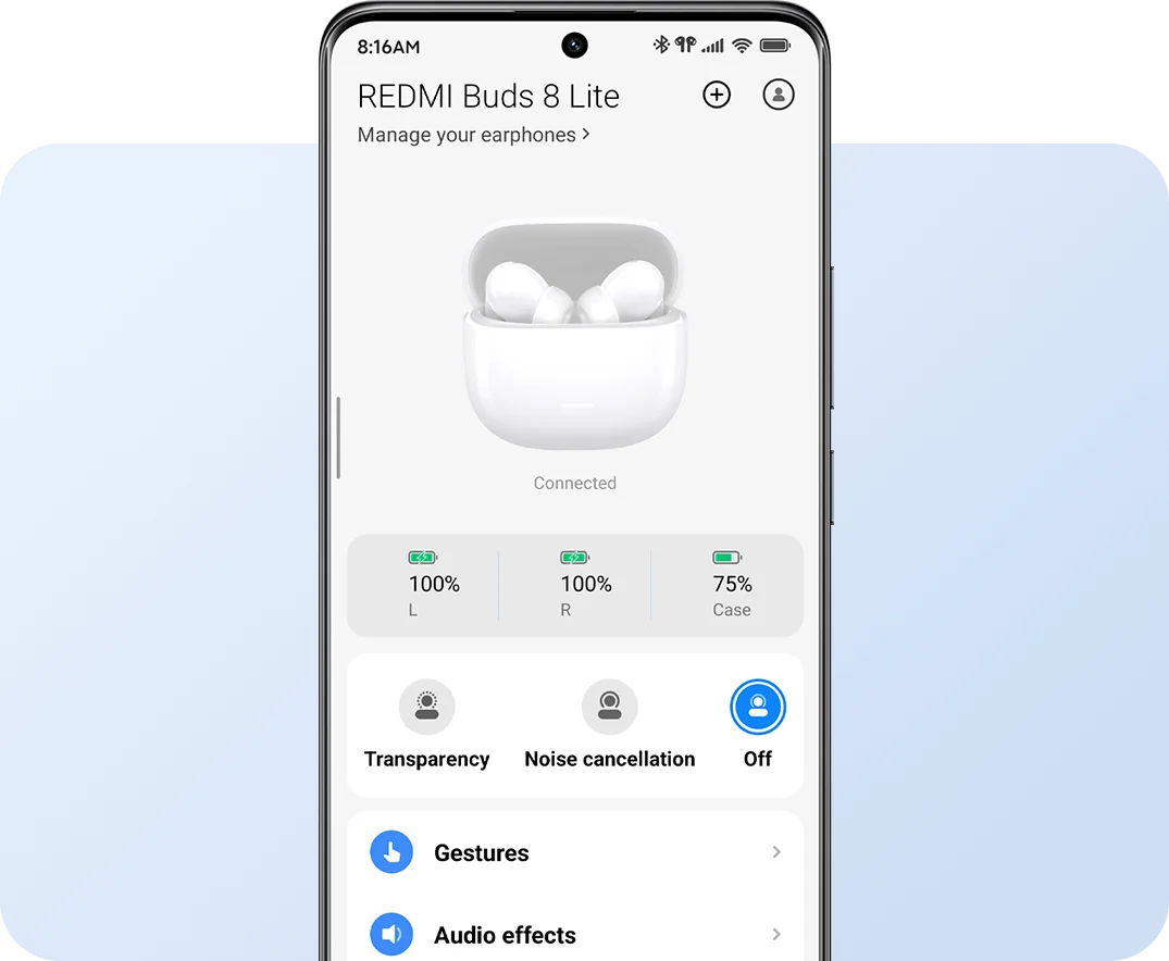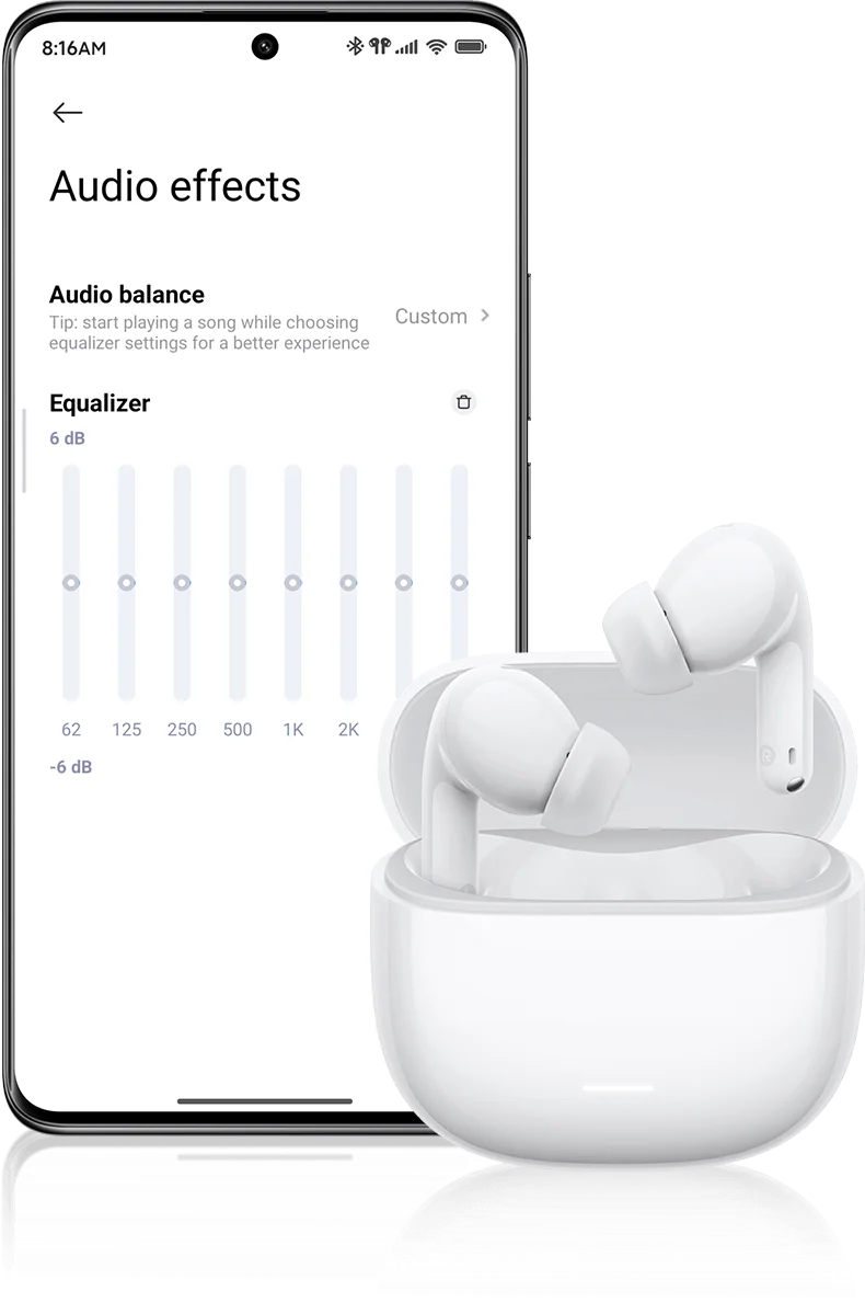 Загрузите приложение Xiaomi Earbuds, чтобы разблокировать дополнительные персонализированные функции. Настройте режимы шумоподавления в соответствии с различными сценариями, используйте эквалайзер для создания желаемого звукового профиля и настройте сенсорные жесты для более интуитивного управления. Приложение также поддерживает обновления прошивки для постоянной оптимизации работы.