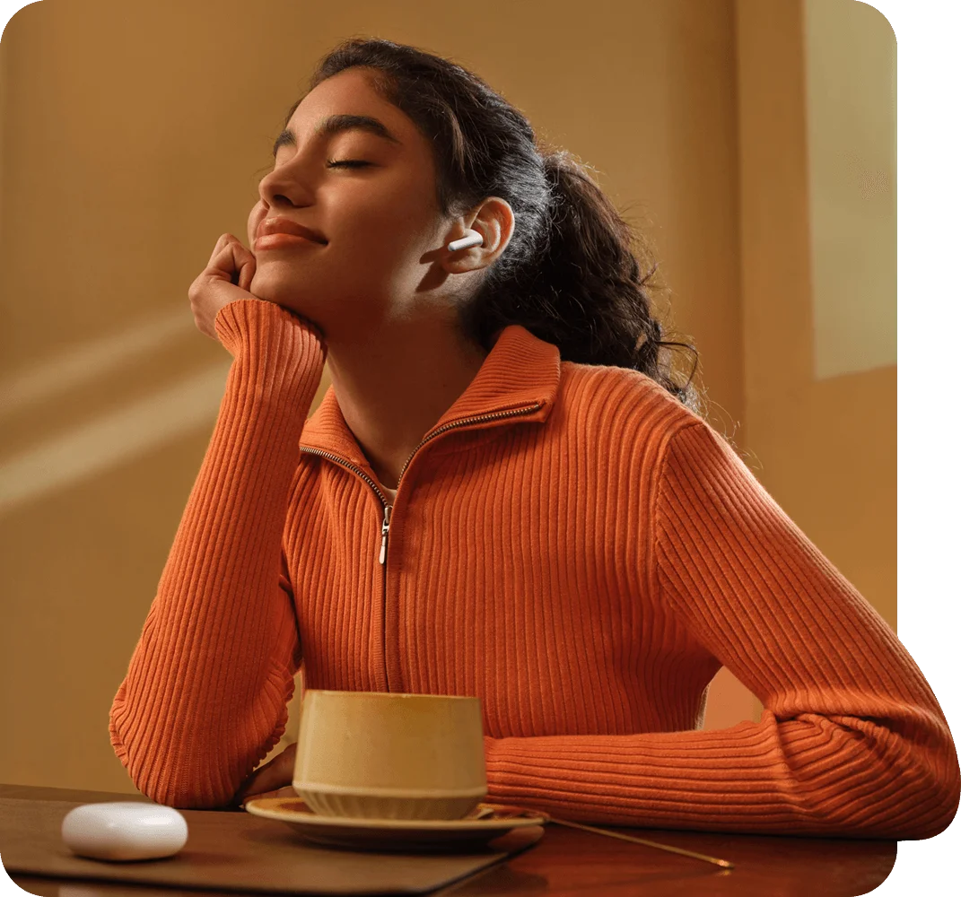 Наслаждайтесь улучшенным шумоподавлением. Гибридное решение ANC с интегрированными микрофонами точно улавливает и снижает различные низкочастотные шумы, такие как гул метро или шум кондиционера, создавая более тихую среду для прослушивания.