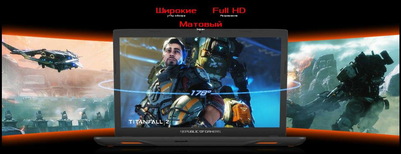 В ROG Strix GL753 используется высококачественная 17,3-дюймовая матрица с разрешением Full HD, чье матовое покрытие минимизирует раздражающие блики, а широкие углы обзора являются залогом точной цветопередачи.