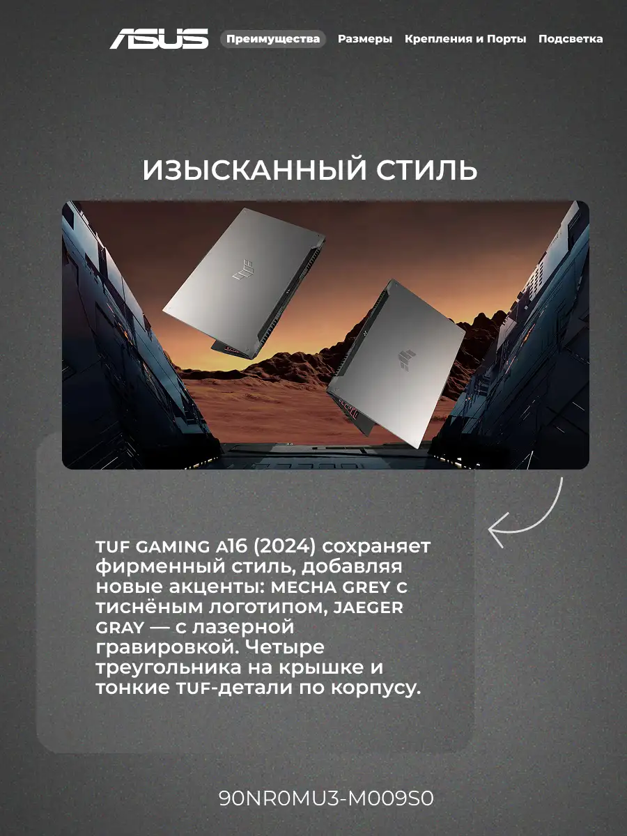 Ноутбук Asus TUF Gaming A16 / FA607NUG-RL162 AMD Ryzen 7 7445HS / 16GB / SSD 512GB / RTX 4050 6GB / NO OS / 90NR0MU3-M009S0