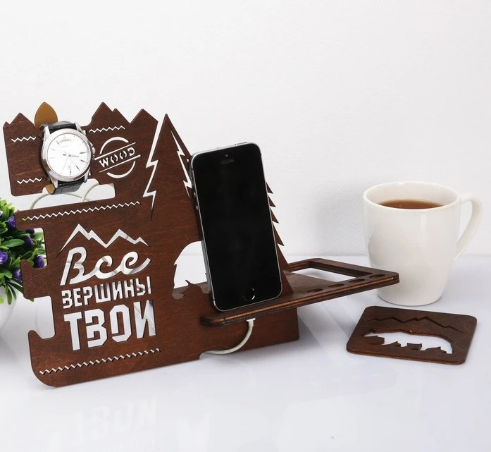 Органайзер станет украшением рабочего стола или прикроватной тумбочки и поможет навести на них порядок. Изделие имеет разъём для провода, позволяет хранить телефон, часы, запонки, серьги, ключи, мелкие аксессуары, банковские карты, визитки.