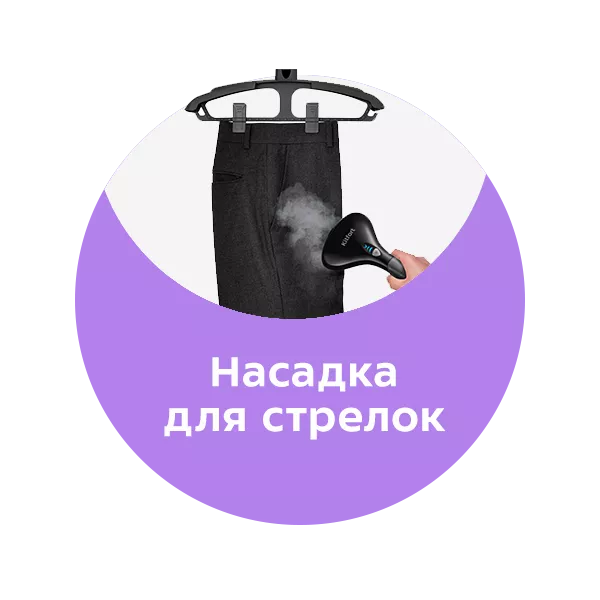 С насадкой для формирования стрелок станет гораздо удобнее гладить брюки и юбки. Чтобы без труда сделать "стрелки" на брюках, достаточно поместить брючное полотно между зажимом и паровым утюжком и выполнять движения "вверх-вниз".