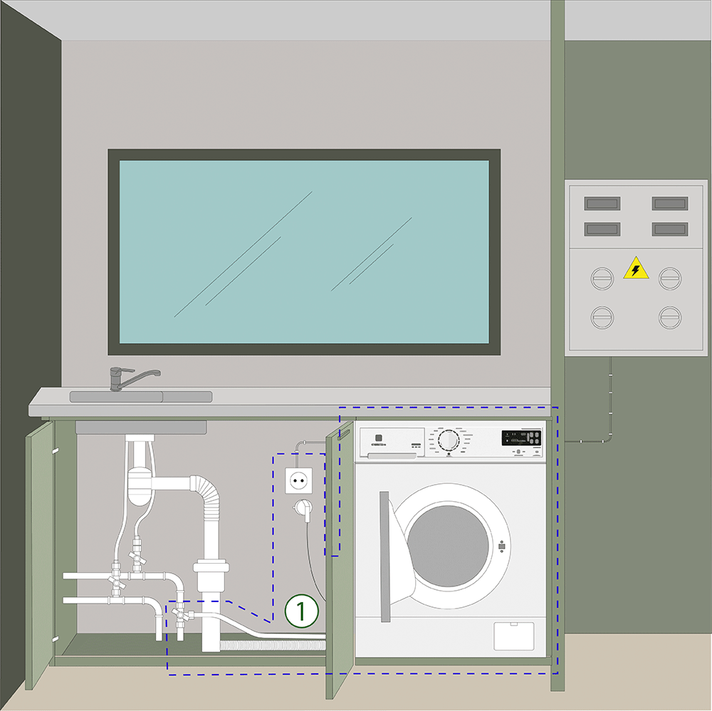 Установка стиральной/посудомоечной машины «Максимум» (с доработкой коммуникаций: электросеть, подводка воды, слив)