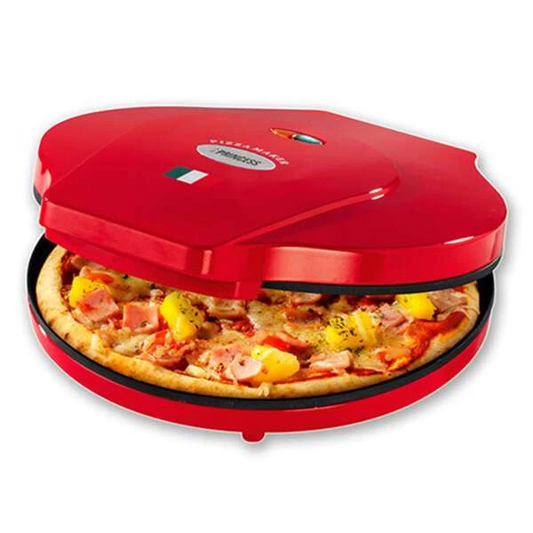 Аппарат великолепно подходит для приготовления различных видов пиццы в домашних условиях, поскольку имеет авторегулятор температуры, а также оснащен контактными лампами сети и нагрева. Для питания ему достаточно 230 В и 50 Гц; мощность – 1500 Вт. Еще одним преимуществом при использовании станет теплоизолированная ручка и устойчивые ножки, которые позволят удобно разместить и установить мейкер в любом кухонном пространстве.
