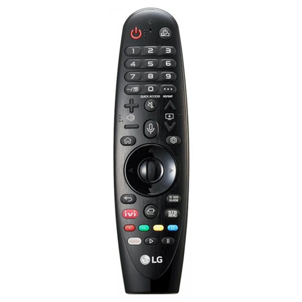 С «волшебным» пультом LG AN-MR19BA больше не понадобятся другие пульты. Этот универсальный девайс способен заменить других дистанционных помощников, позволяя полноценно управлять не только телевизором, но и домашним кинотеатром, музыкальным центром, аудиопроигрывателем и даже «умным домом». Девайс заметно упрощает управление техникой с функцией SMART, разрешая просматривать любые программы и осуществлять настройку без использования стандартных кнопок. Функциональное колесико упростит пролистывание меню и страниц в интернете, распознавание голоса выполнит практически любую голосовую команду, управление курсором позволит использовать пульт подобно компьютерной мыши, а жесты легко заменят сложную команду. Также имеются и стандартные кнопки управления для: включения и перевода телевизора в режим ожидания, ввода чисел, перехода в главное меню и настройки, доступа к списку каналов, отображения меню быстрого доступа, отключения звука и регулировки громкости, включения аудио описаний, переключения каналов, доступа к домашней панели SMART ТВ, возврата и повтора, вызова программы передач, записи, управления медиаконтентом и прочего.