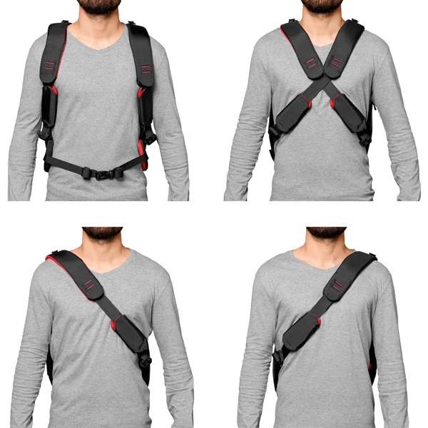 Многофункциональный профессиональный рюкзак для камеры, который позволяет носить его тремя разными способами в зависимости от оборудования.