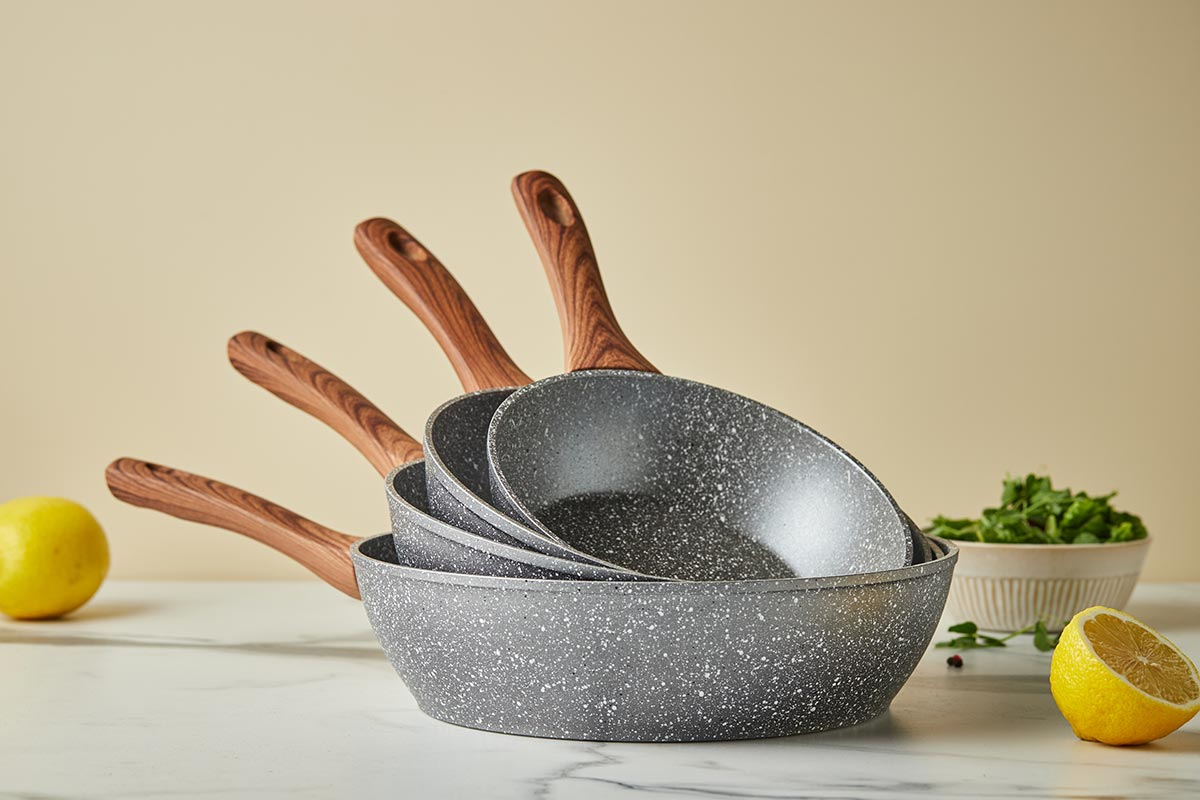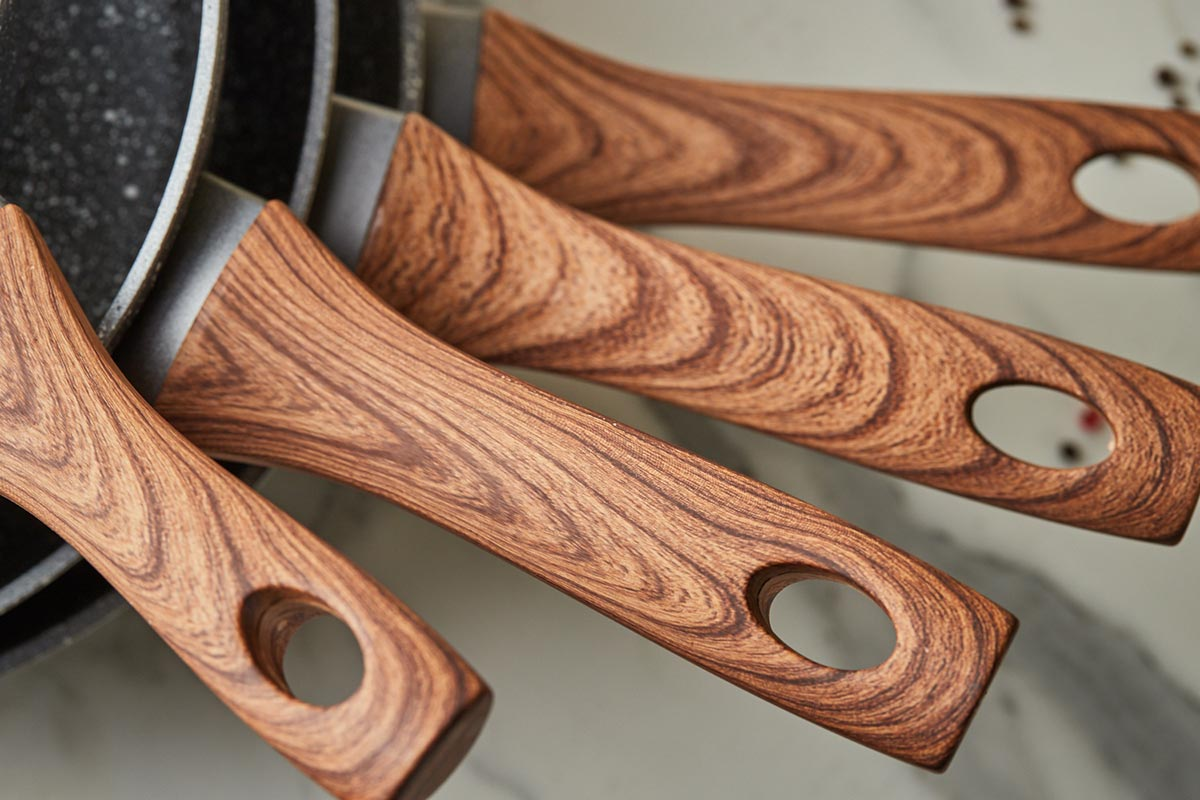 Сковороды из коллекции Aquila прекрасно подходят для повседневной эксплуатации - с ними ваша кухня будет выглядеть так же привлекательно, как и приготовленные вами великолепные блюда. Стилизованные под дерево ручки с мягким покрытием Soft-touch создадут домашний уют и идеальную эстетику, а удобная петля для подвешивания позволит аккуратно и рационально организовать рабочее пространство на вашей кухне. Как следствие, приготовление пищи принесёт вам комфорт и неописуемое удовольствие. Закончив, хорошо вымойте сковороду и повесьте её на крючок для просушки.