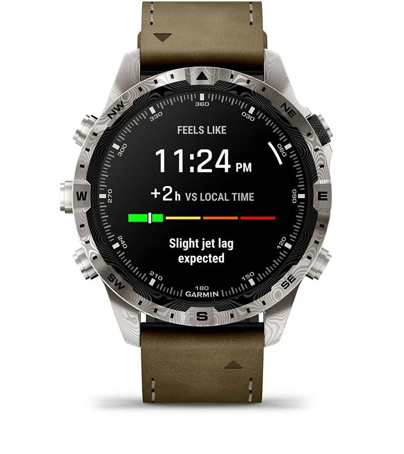 Минимизируйте последствия смены часовых поясов благодаря рекомендациям по освещенности, режиму сна и физическим нагрузкам во время следующего дальнего путешествия. Внесите информацию о вашем путешествии в календарь приложения Garmin Connect™ для смартфонов и отслеживайте, как ваши физиологические часы приспосабливаются к новому месту назначения.